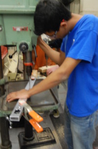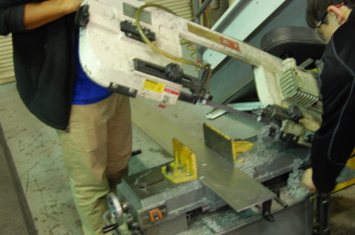 Students also used the mill to make the metal bumper support brackets, which are needed to attach the bumper to the robot drive base. They were able to finish this and will soon be riveted together and sent out to be welded.
