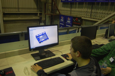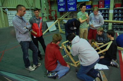 Today, the programming team worked to get the 2013 practice robot up and running to test the drivebase. Several problems were encountered along the way. First, they had an SDK error on the robot which took them a long time to fix - eventually a cRio reflash solved the problem. Second, there was a problem with the wiring on the robot so they weren't receiving any data from the TCP server. They eventually fixed the problem and now they are working on a way to graph the data from the robot in a quick and easily readable way.